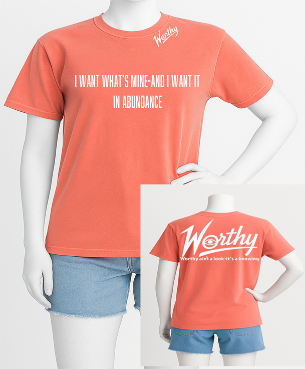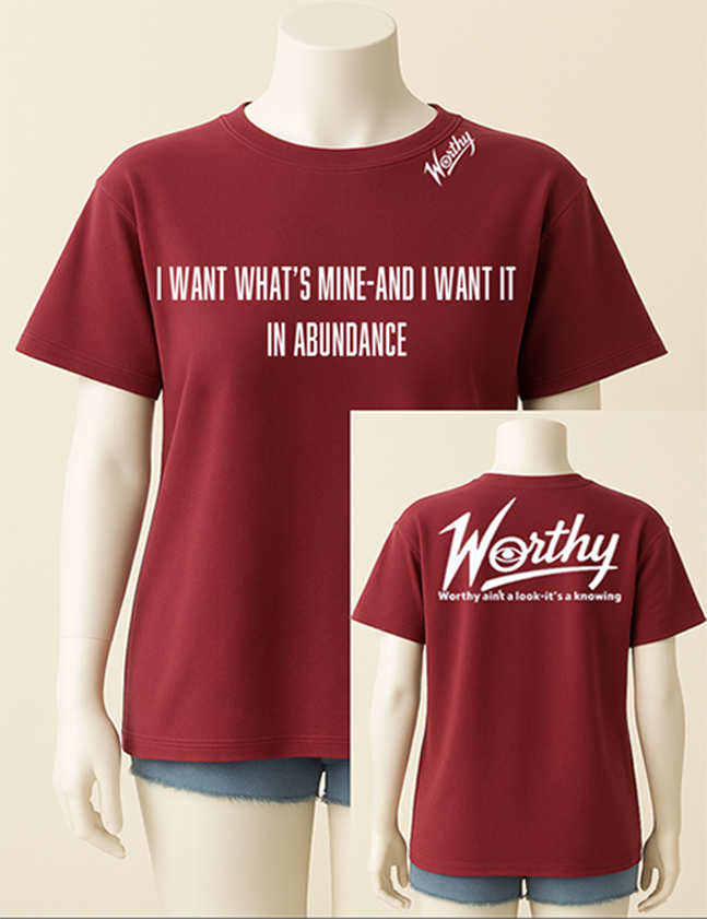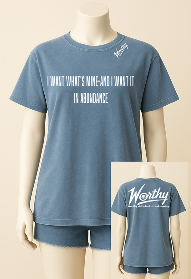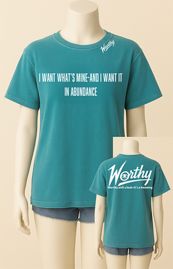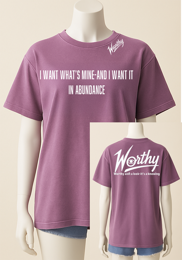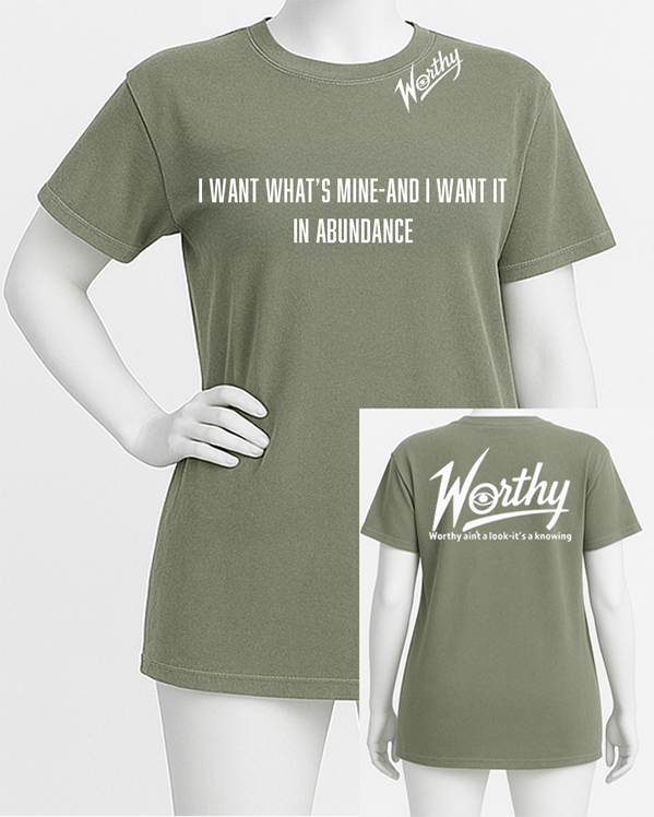 Front: “I want what’s mine — and I want it in abundance.”